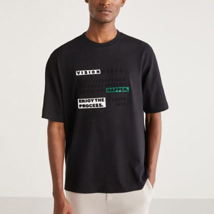 Men’s Regular Fit Thick Fabric 3D Three-Dimensional Embroidery T-Shirt